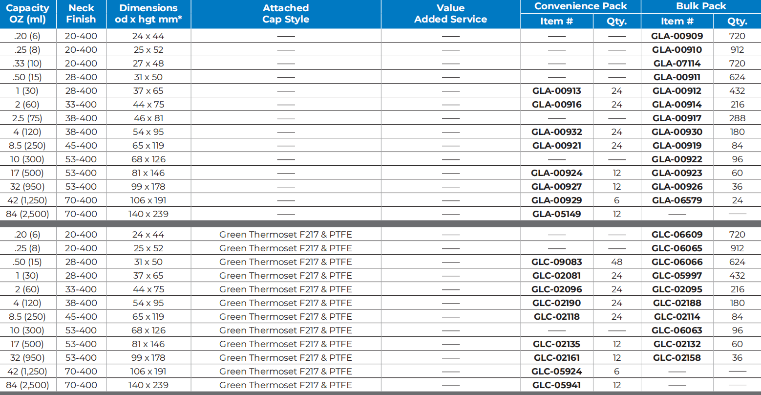 • Wide opening, general purpose bottle recommended for light sensitive products